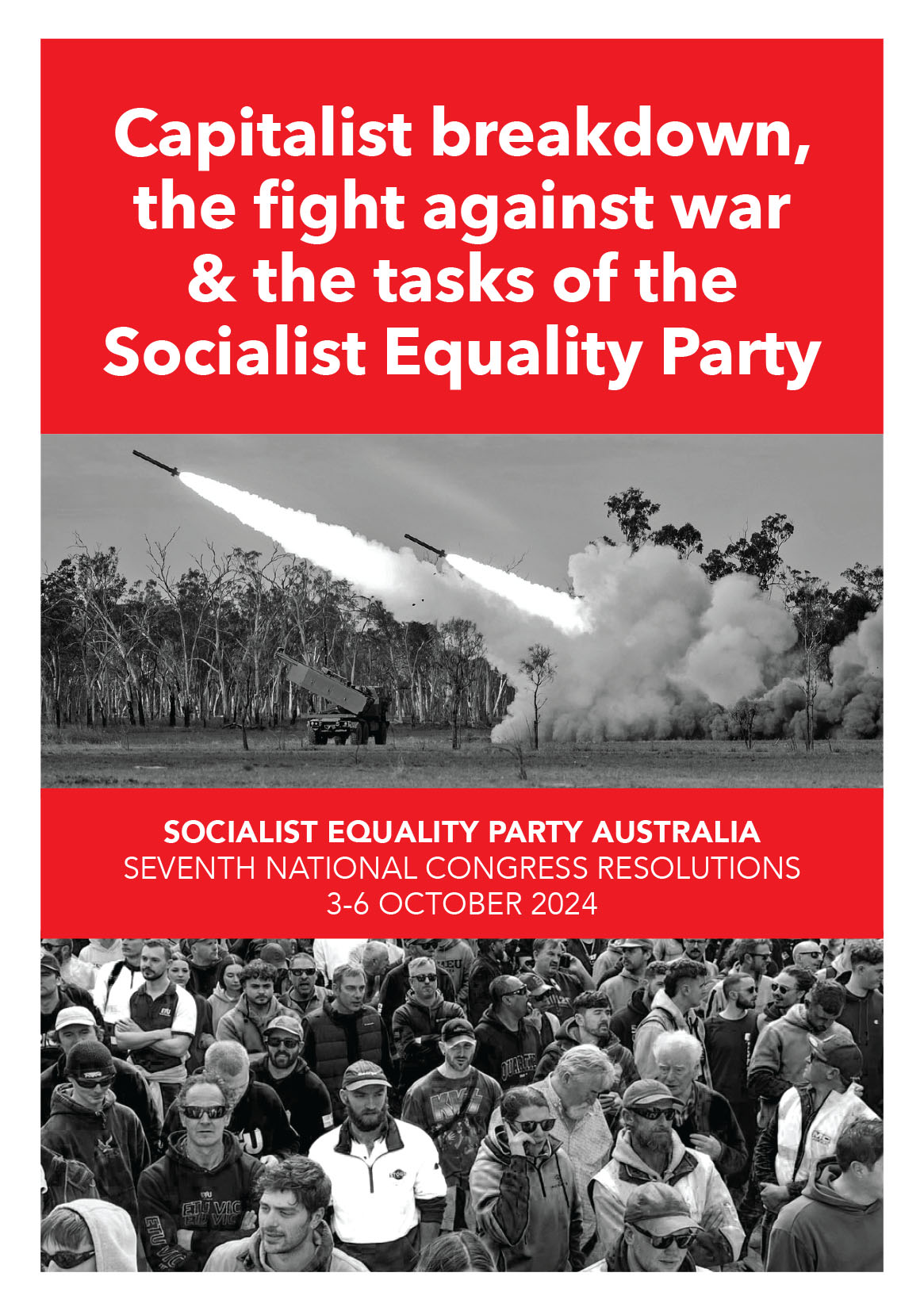 This pamphlet contains the resolutions of the Seventh National Congress of the Socialist Equality Party (Australia), held from October 3 to 6, 2024